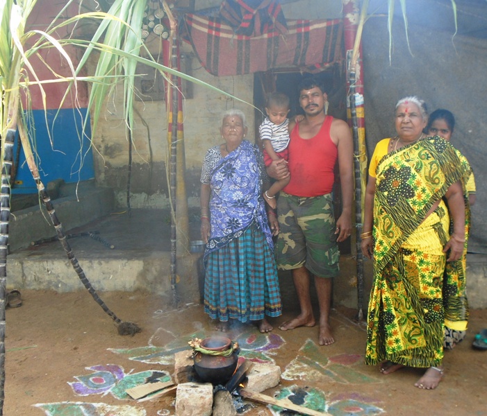 வழக்கமாக கிராமங்களில் தை மாதம் முதல் நாள் பொங்கல் பண்டிகை அன்று, புத்தாடை அணிந்து, வீட்டு வாசலில் கோலமிட்டு, செங்கரும்பு நிறுத்தி, அடுப்புக்கட்டி புது மண் பானையில் பொங்கல் வைப்பது வழக்கம்.